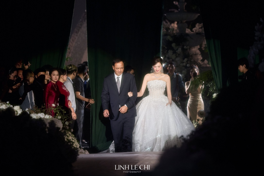 Một trong những khoảnh khắc đáng nhớ nhất là khi bố cô dâu nắm tay con gái và dẫn lên lễ đường, trao lại cho con rể. Khoảnh khắc này đã khiến Hoa hậu Đỗ Thị Hà không kìm được xúc động. Tại buổi lễ, bố chú rể cũng có bài phát biểu đầy tình cảm, ví câu chuyện tình yêu của hai con như hai dòng sông Nhật Lệ và Long Đại hòa hợp để cùng nhau ra biển lớn.